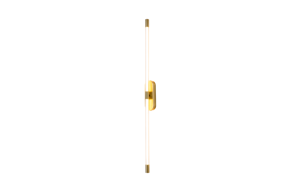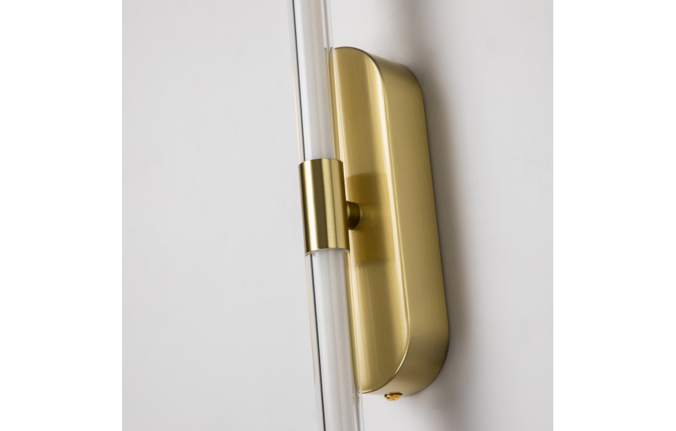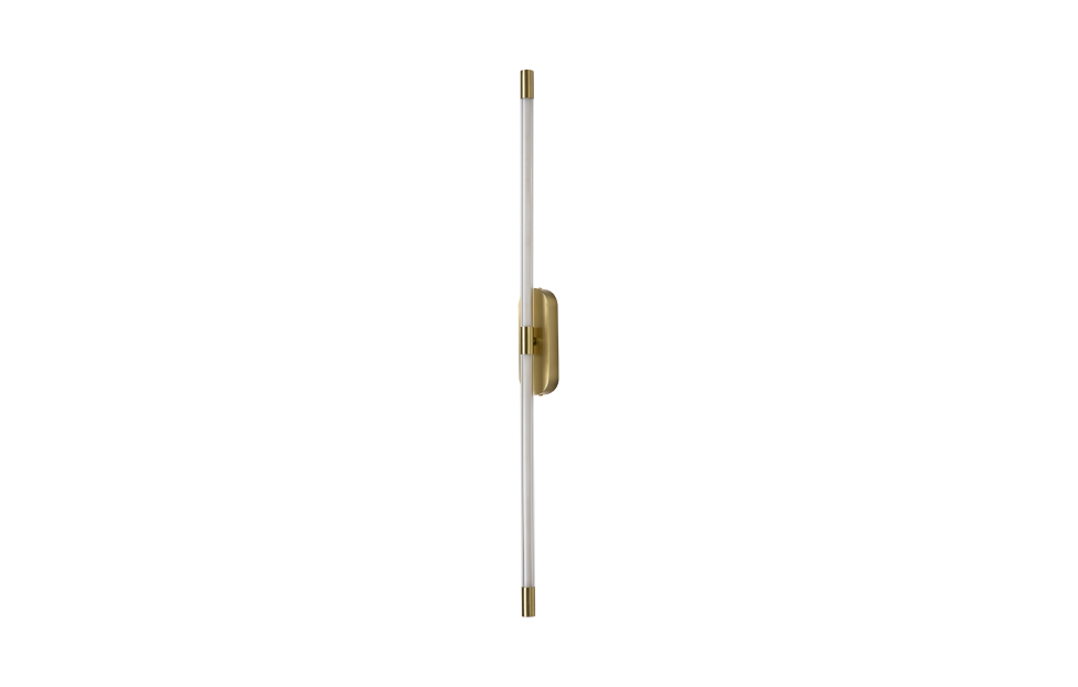 Arrow – коллекция настенных светильников в цвете золотой гальваники. Плафоны выполнены из белого полупрозрачного акрила. Светильники можно крепить как горизонтально, так и вертикально. Они подойдут для интерьеров как в классическом стиле, так и в стиле хай-тек.