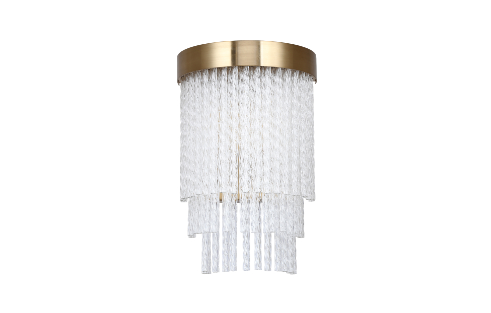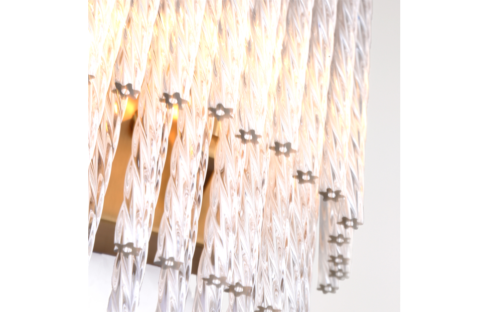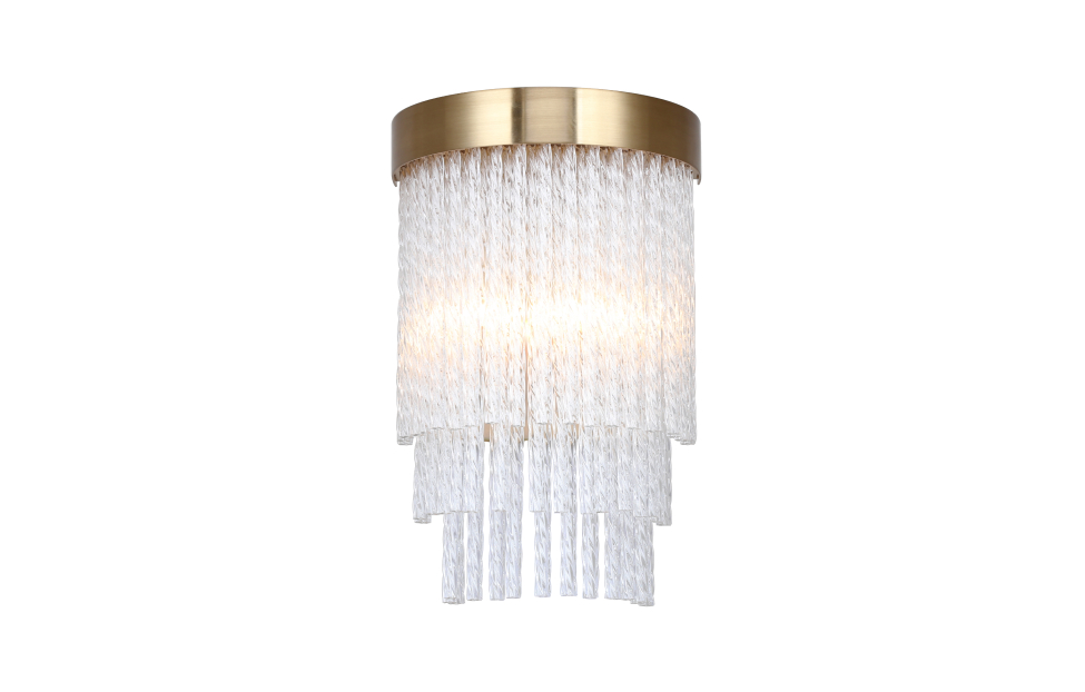Коллекция Bellinda выполнена в стиле американской классики. Каскадная конструкция состоит из закрученных вокруг своей оси стеклянных трубочек. Этот декор скрывает лампы и мягко пропускает свет. Цвет латуни придает бра изысканный вид.
