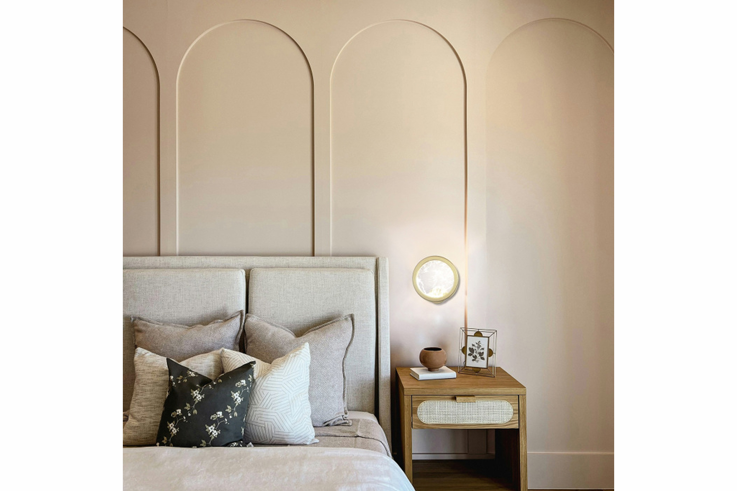 При создании коллекции светильников Imma вдохновлялись пейзажной живописью тушью. Светильники задуманы как световые скульптуры с чувственными, завораживающими рисунками, которые, пропуская свет, создают неповторимые цветовые переходы. Металлический каркас в цвете матовое золото, плафоны из акрила с эффектом дыма, лента LED расположена по внутреннему периметру плафона.