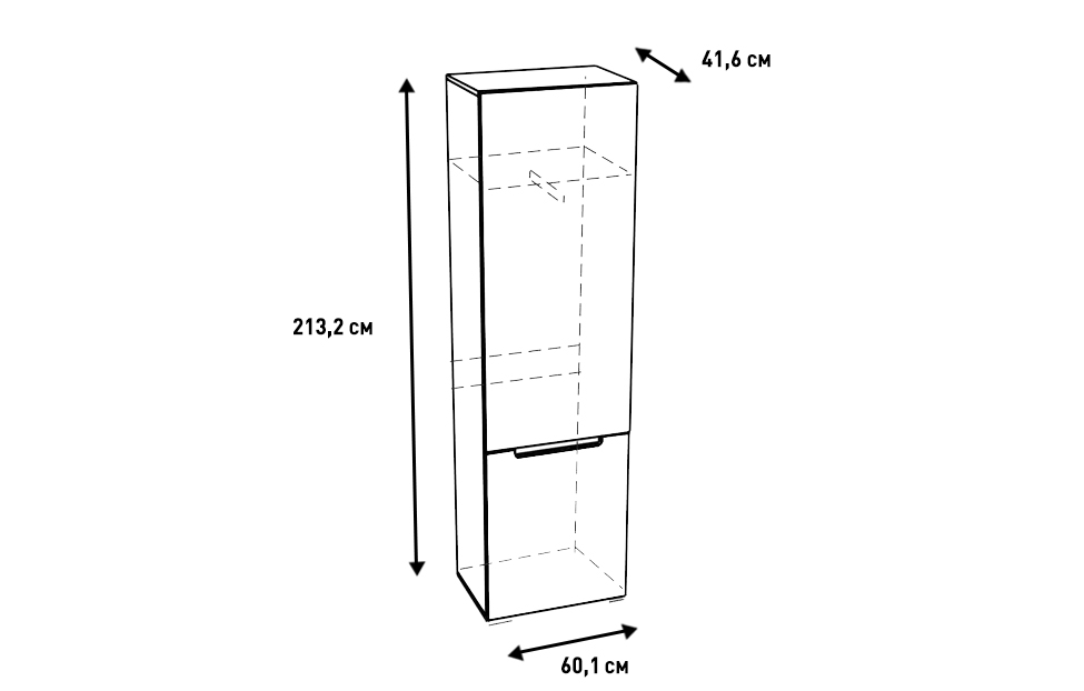 • Необходимо крепление шкафа к стене во избежание опрокидывания при открывании двери (в фурнитуре для этого есть крепежный уголок);