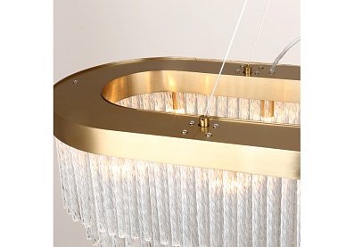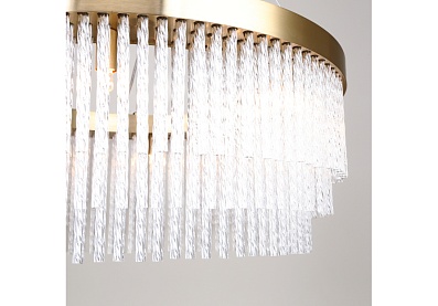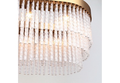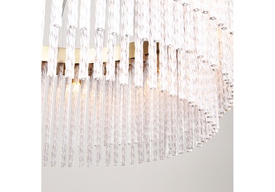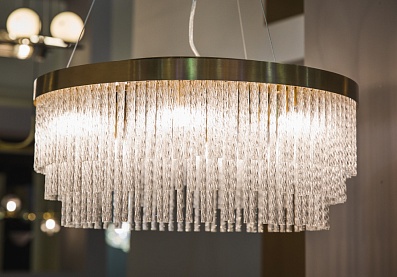 Коллекция Bellinda выполнена в стиле американской классики. Каскадная конструкция состоит из закрученных вокруг своей оси стеклянных трубочек. Этот декор скрывает лампы и мягко пропускает свет. Цвет латуни придает подвесу изысканный вид.