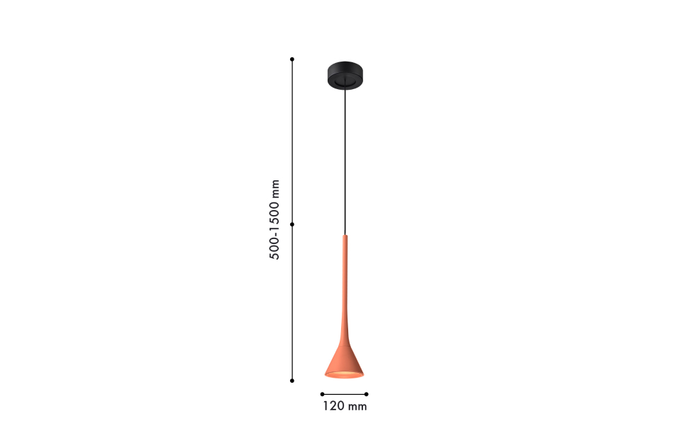 Коллекция Klokken представлена подвесами в форме удлиненной трубочки с конусом на конце, такой плафон позволяет потоку света от встроенного LED-модуля рассеиваться под широким углом обеспечивая качественное освещение рабочей поверхности. Подвесы изготовлены из анодированного алюминия, что делает их поверхность более устойчивой к коррозии. Металлический каркас черного цвета, плафон из алюминия в форме тонкого удлиненного цилиндра с конусом на конце в кирпичном цвете, в нижней части подвеса расположен светодиодный источник света, регулируемая высота.