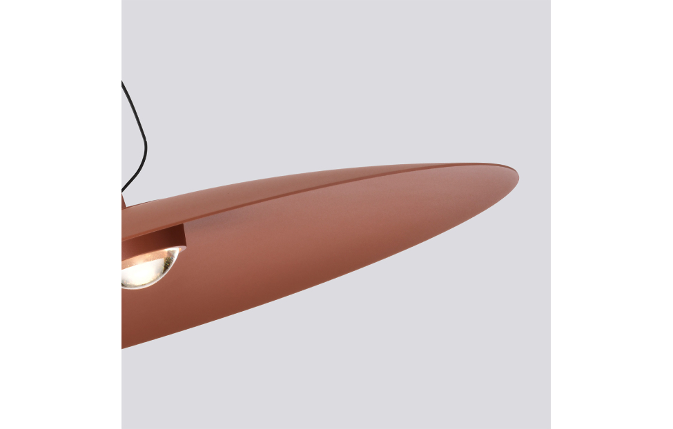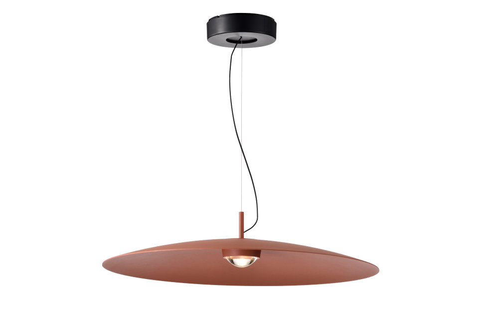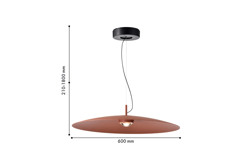 Коллекция подвесов Lars обладает архетипической практически плоской формой купола. Крупный по диаметру алюминиевый плафон имеет лаконичный силуэт и оснащен светодиодным источником света под акриловой лупой. Использование лупы в качестве рассеивателя очень популярно в настоящее время, так как кроме эстетической составляющей, она усиливает и равномерно распределяет поток света. Металлический каркас черного цвета, плафон в кирпичном цвете, диаметром 60 см, алюминиевый плафон имеет лаконичный силуэт и оснащен светодиодным источником света под акриловой лупой, регулируемая высота.