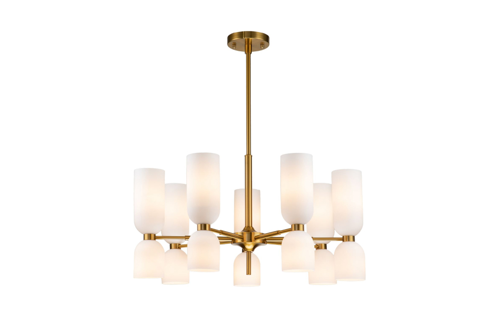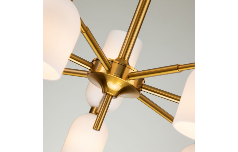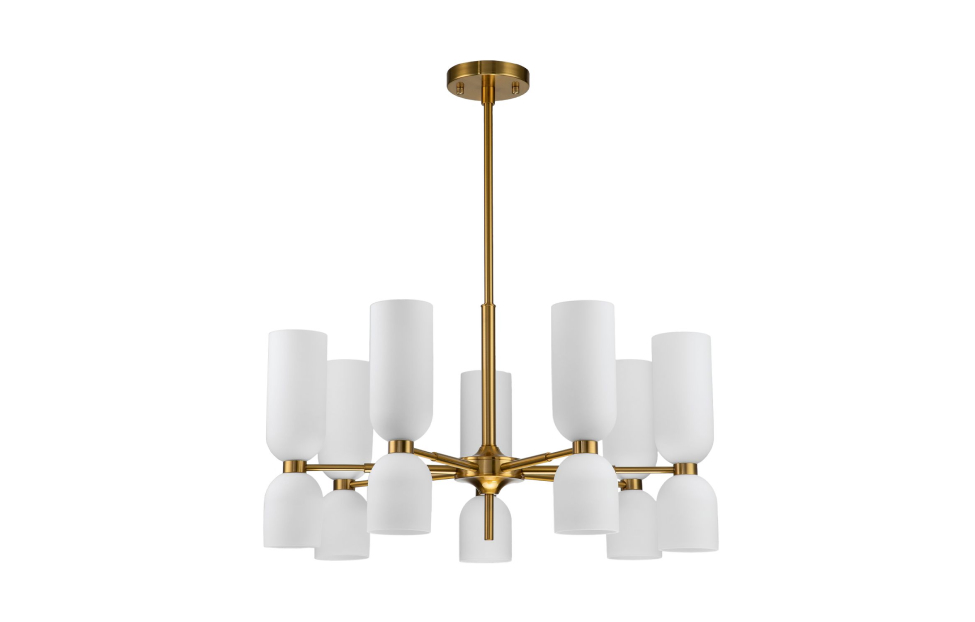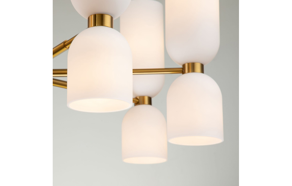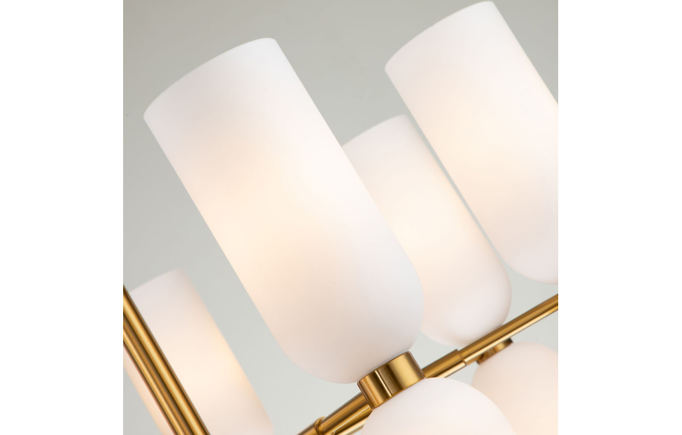 Подвесная люстра коллекции Amusing с белыми выдувными плафонами и латунным каркасом. Двойные плафоны оригинальной формы и разной высоты хорошо рассеивают свет ламп, направленных вверх и вниз. Латунная коллекция станет красивым дополнением к классическому интерьеру. Высоту люстр можно менять благодаря составному центральному штоку.