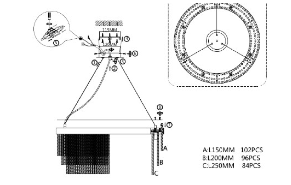 Цена на Подвесная люстра Bellinda D600*H350/1300 8*G9*40W от производителя , отличный выбор!