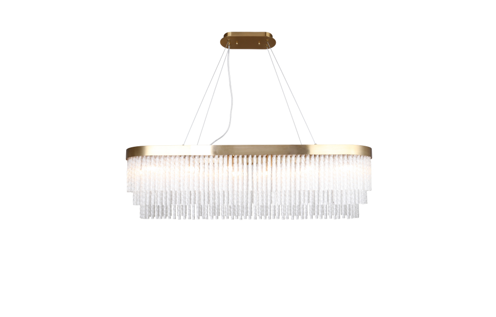 Коллекция Bellinda выполнена в стиле американской классики. Каскадная конструкция состоит из закрученных вокруг своей оси стеклянных трубочек. Этот декор скрывает лампы и мягко пропускает свет. Цвет латуни придает люстрам изысканный вид. Крепление на струнах позволяет регулировать высоту подвеса.