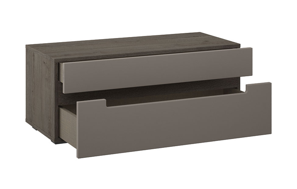 - Цвет: давос трюфель (корпус) + темный лен (задняя стенка ящиков внутри) + бежево-серый (фасад);