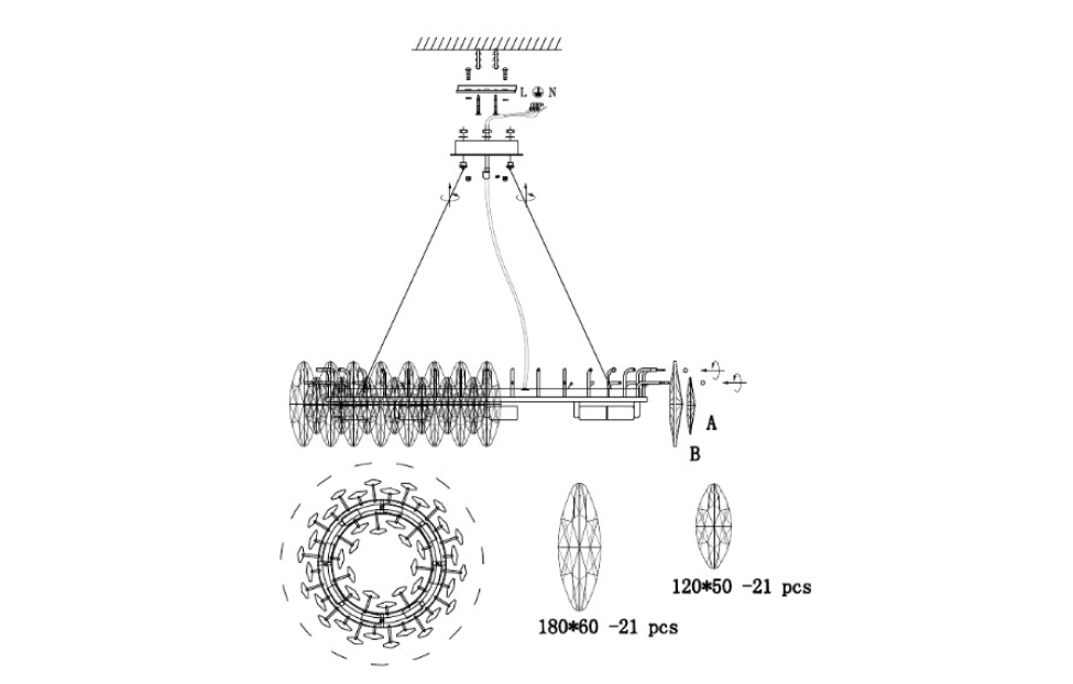 Цена на Подвесная люстра Glans D500*H210/1300 8*E14*40W от производителя , вы можете приобрести в кредит!