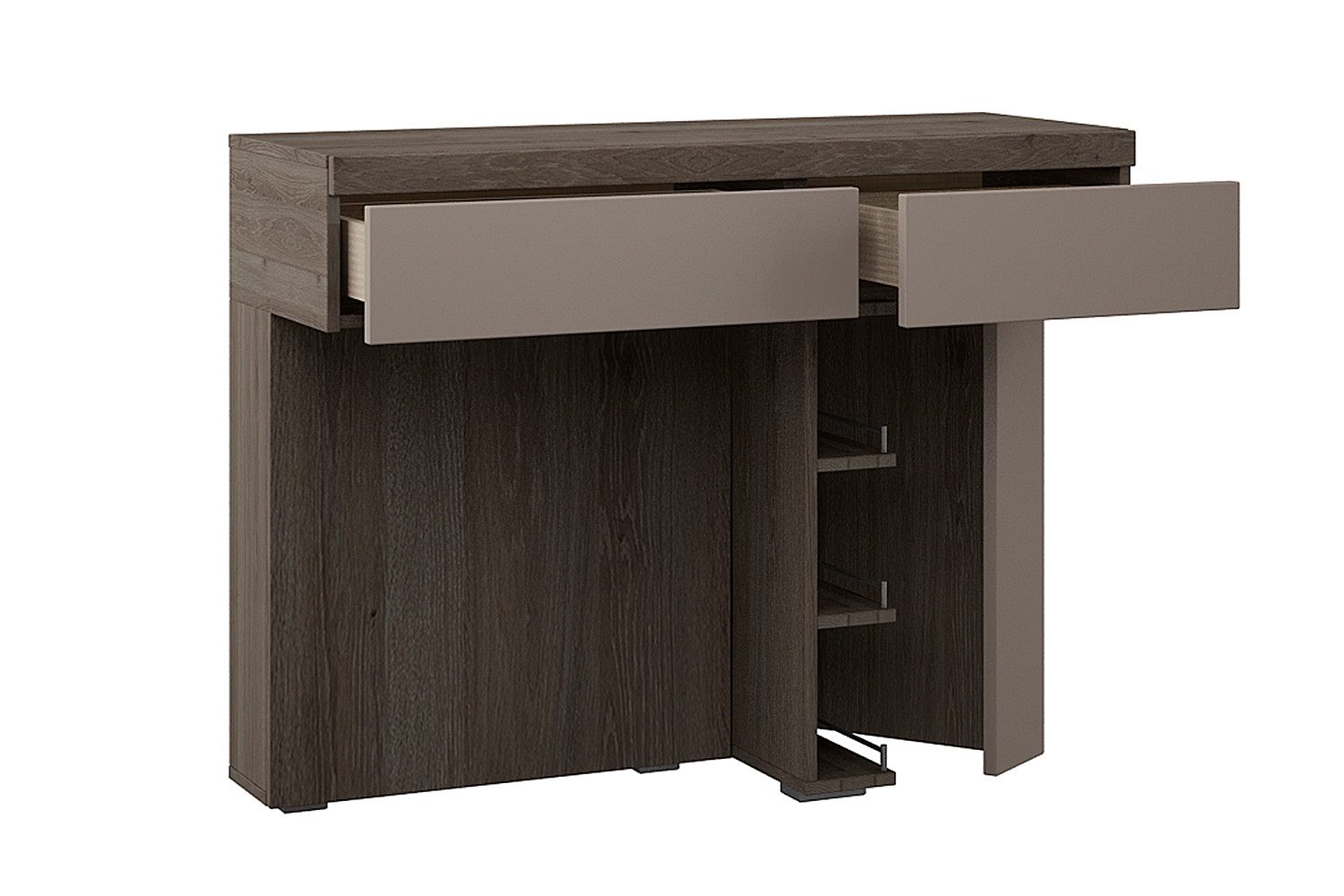 • Стол туалетный с двумя выдвижными ящиками и отделением с полками за распашной дверью;