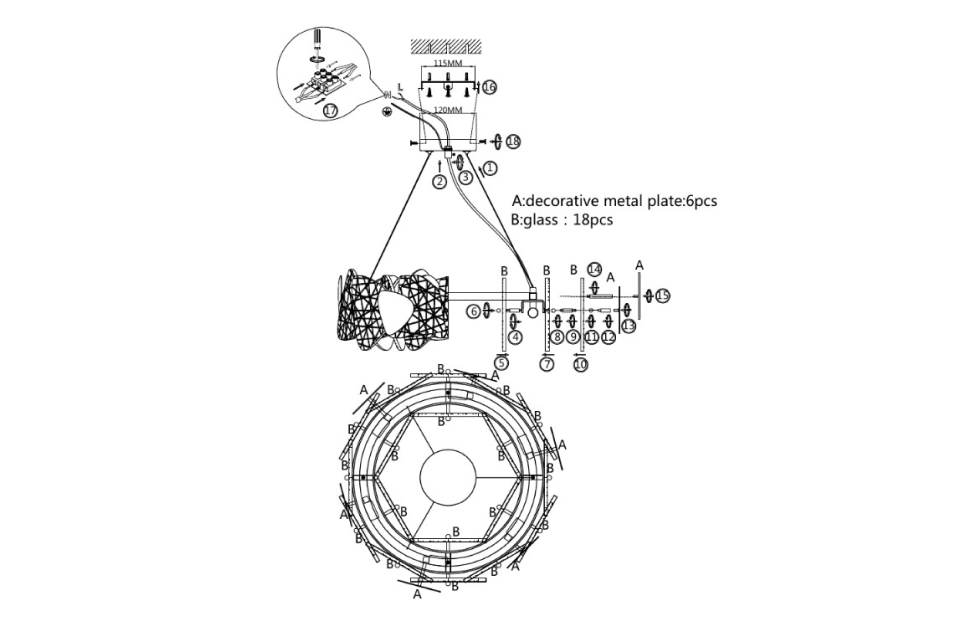 Купить Подвесную люстру Krakle D490*H300/1150 6*G9*40W в интернет-магазине мебели «Ангстрем»