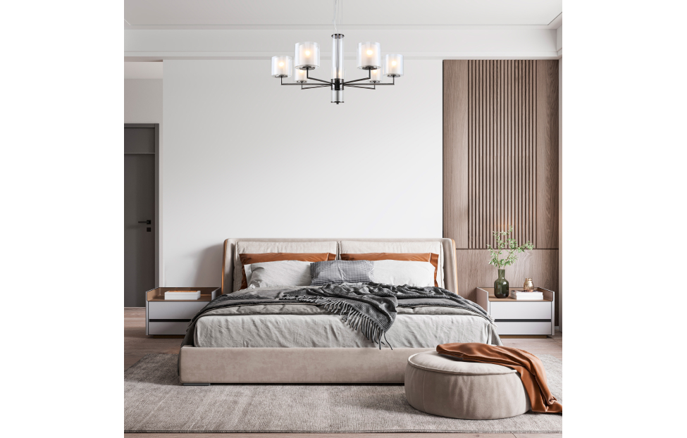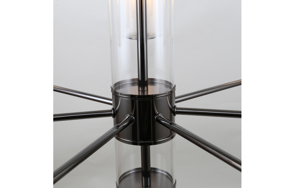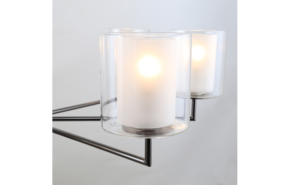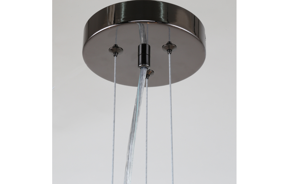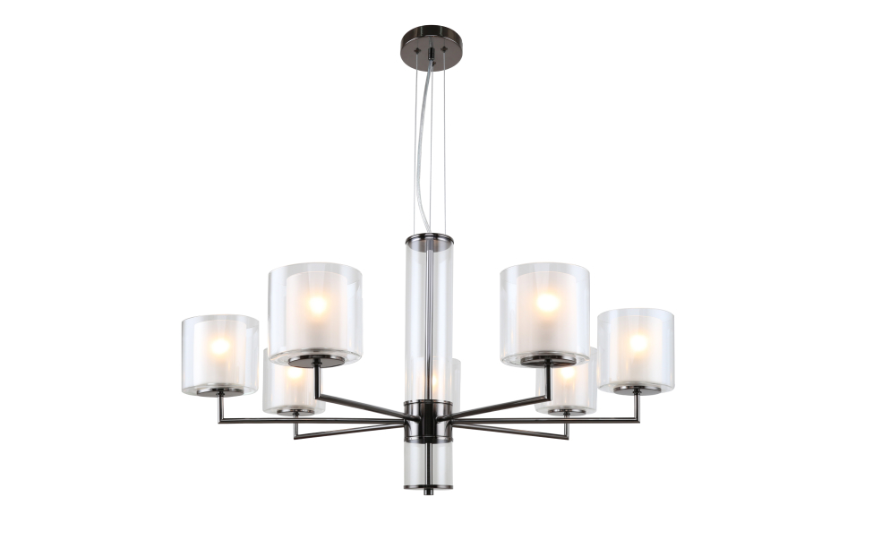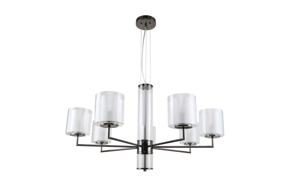 Оригинальные плафоны из двойного стекла – изюминка коллекции светильников Proper. Внутренние плафоны выполнены из матового белого стекла, внешние – из прозрачного стекла. Вторым оригинальным элементом коллекции является центральный шток с декоративным стеклянным цилиндром. Крепление на тросах позволяет регулировать высоту.
