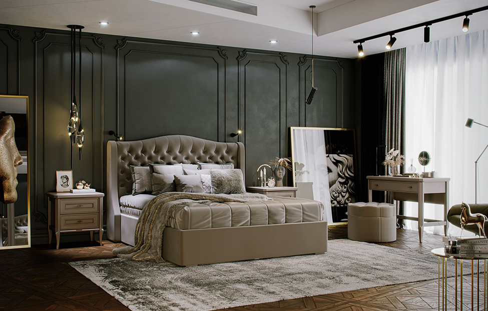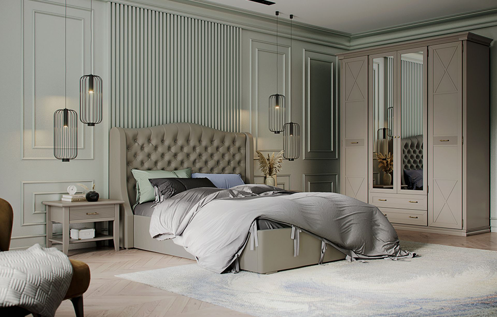 - Мягкая кровать «Орнелла» идеально впишется в классический интерьер, который отличается симметричными линиями и сочетает в себе роскошь, эстетичность и практичность. Оттенки серого позволят создать ощущение комфорта в спальной комнате, а это очень важно для нормального отдыха;