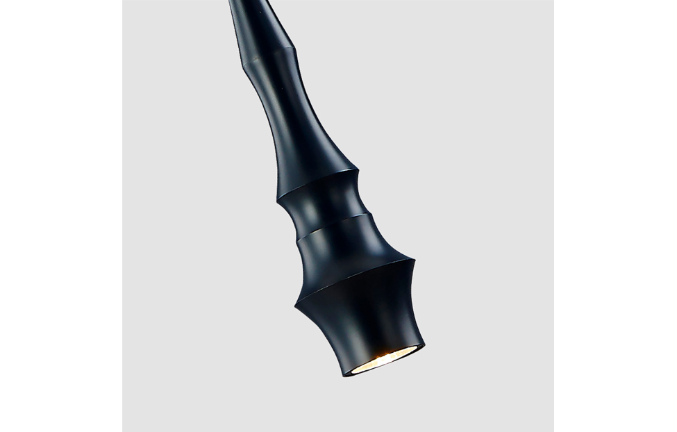 Коллекция подвесов с изысканной удлиненной формой. В этой коллекции доступны три оригинальных варианта плафона в виде удлиненного узорного конуса. Вы можете выбрать из двух цветовых вариантов — черный и матовое золото, что добавляет элегантности и стиля вашему интерьеру. Стилистика этих подвесов напоминает природные линии, ветви деревьев или даже свечи, придавая им уникальный и органический вид. Дизайн создает атмосферу уюта и естественности, подчеркивая естественную красоту форм природы.