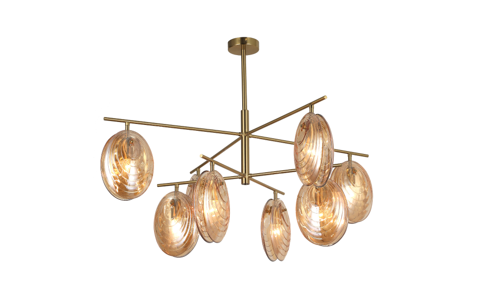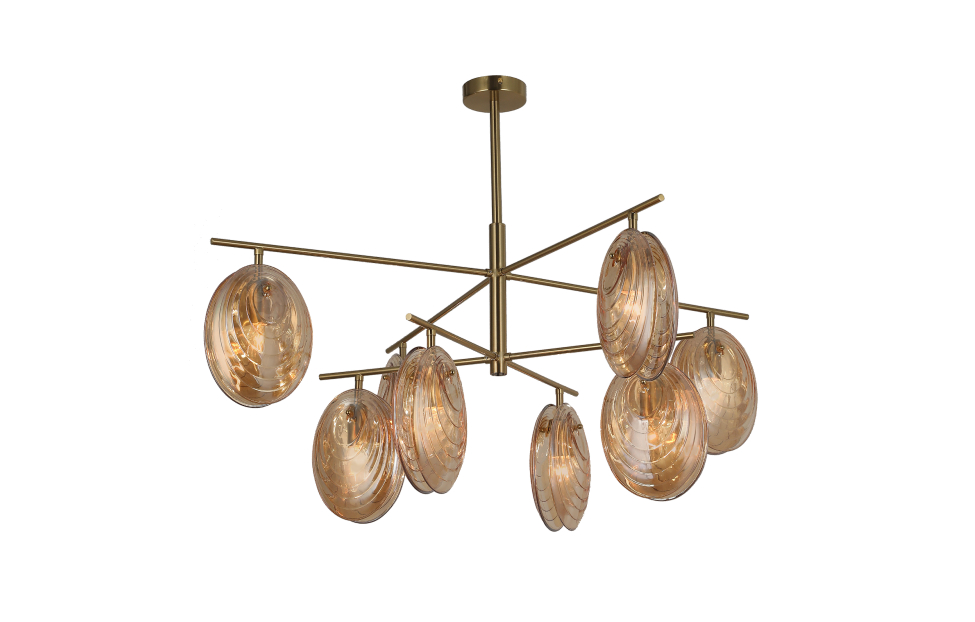 Коллекция светильников Media — это воплощение современного стиля. Светильники выполнены в цвете латуни, что придает им шарм и изысканность. Особенностью декора плафона является использование двух узорных стеклянных пластин, которые напоминают створки ракушки, внутри которых расположена сменная лампа Е14. Создается ощущение, что светильники декорированы стеклянными ракушками, что придает им неповторимый и оригинальный вид. Металлический каркас в цвете латунь, плафоны состоят из двух узорных стеклянных пластин янтарного цвета, цоколь E14, регулируемая высота.