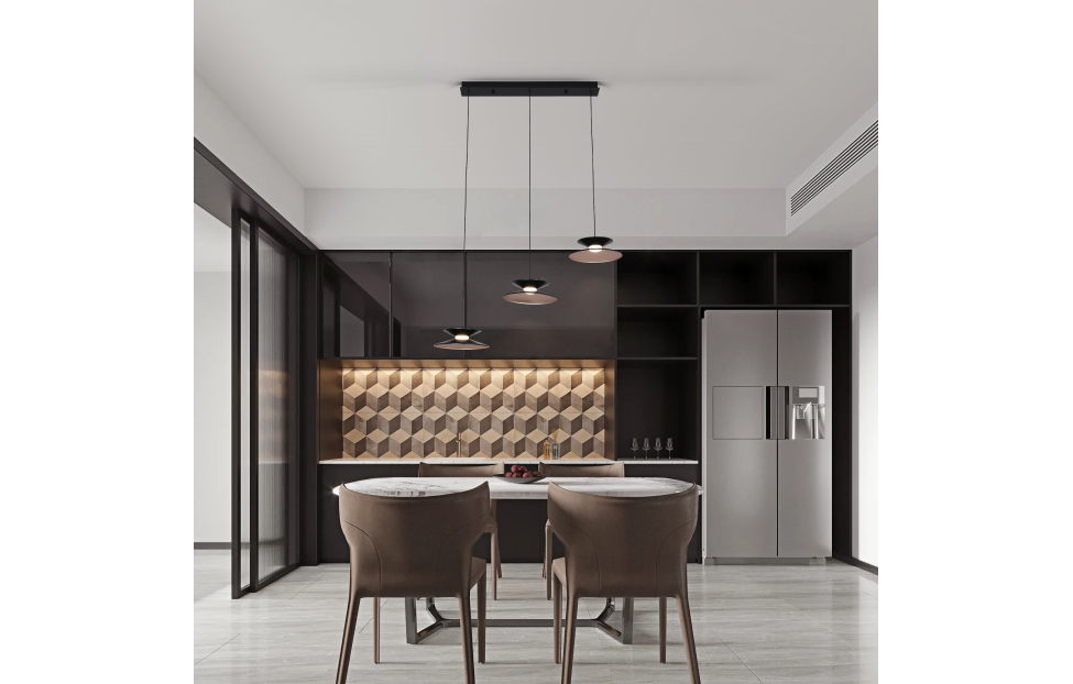 Потолочная люстра Platt напоминают по форме катушку благодаря соединению конусов, элегантно подсвеченных светодиодным модулем. Матовый черный цвет придает элегантность и стиль, создавая контраст с насыщенной песочно-золотой окраской, которая привносит тепло и уют. Внутренняя золотая поверхность плафонов отражает свет, делая помещение светлее и ярче, создавая комфортную атмосферу. Регулируемая высота.