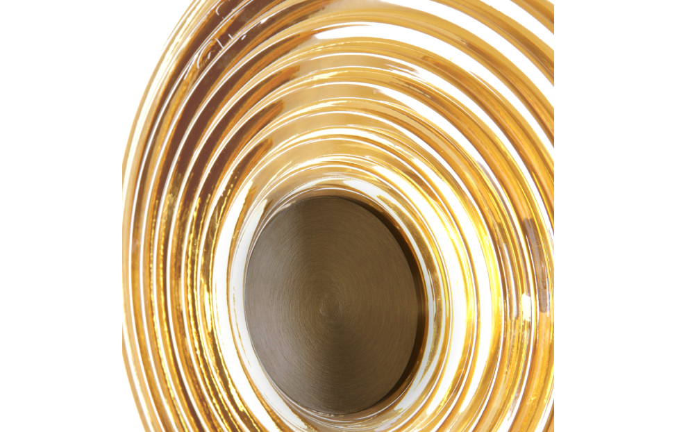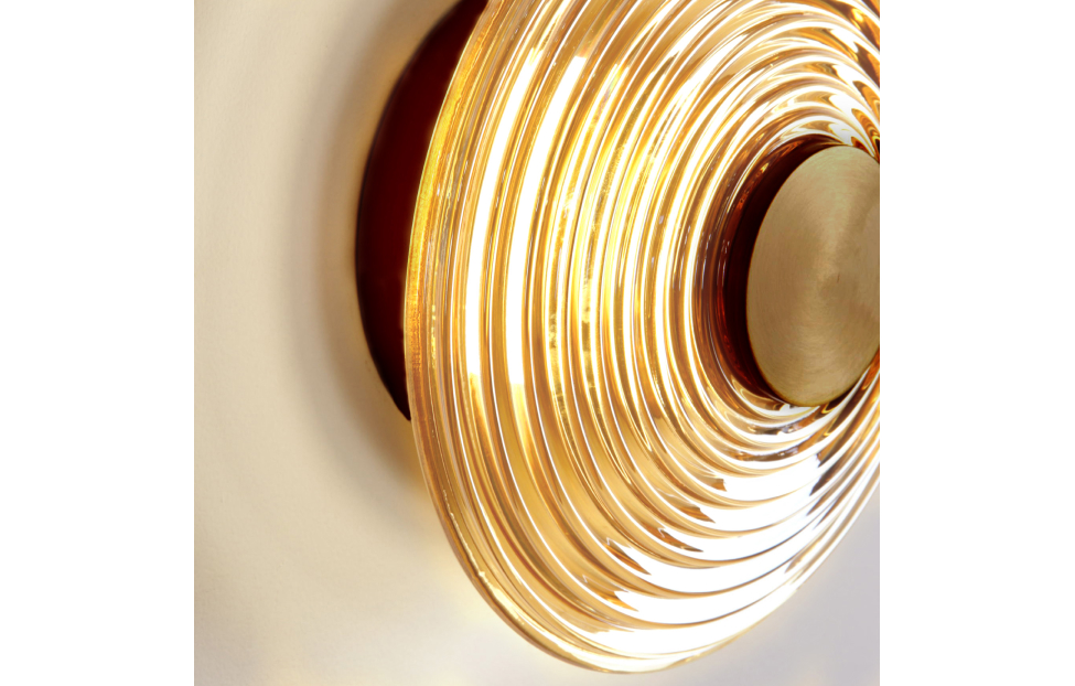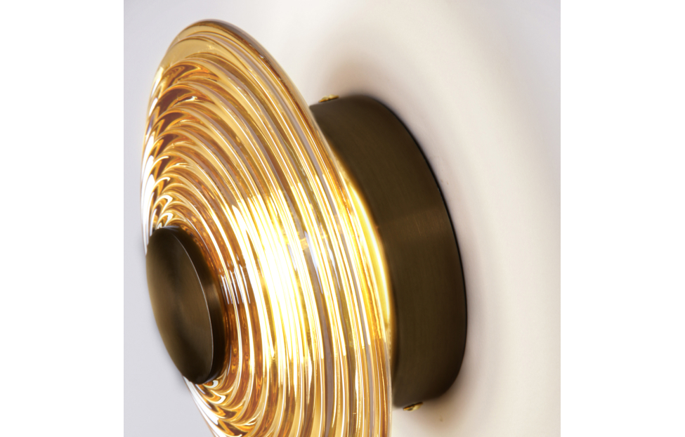 Светильники Whirlpool представляют собой современные элементы освещения с каркасом цвета латуни. Свет от встроенных LED-модулей создает впечатляющий эффект: он расходится внутри плафона, создавая игры света и теней. Этот эффект добавляет атмосферности и загадочности в помещение, делая освещение коллекции Whirlpool функциональным и художественным. Металлический каркас в цвете латунь, плафоны из стекла янтарного цвета с объемной структурой колец, встроенный LED-модуль.