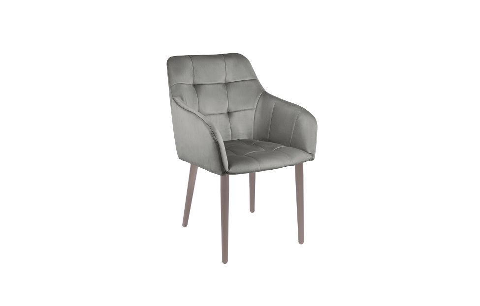 Стул-кресло Отэм прекрасно впишется в любой интерьер и комнату. Такой стул можно использовать как в качестве обеденного стула, так и в виде рабочего кресла к письменному столу. Обивка из велюра в актуальном сером оттенке прекрасно гармонирует с металлическими ножками черного цвета. Такие стулья украсят современные интерьеры, а также пространства в стиле эклектики.