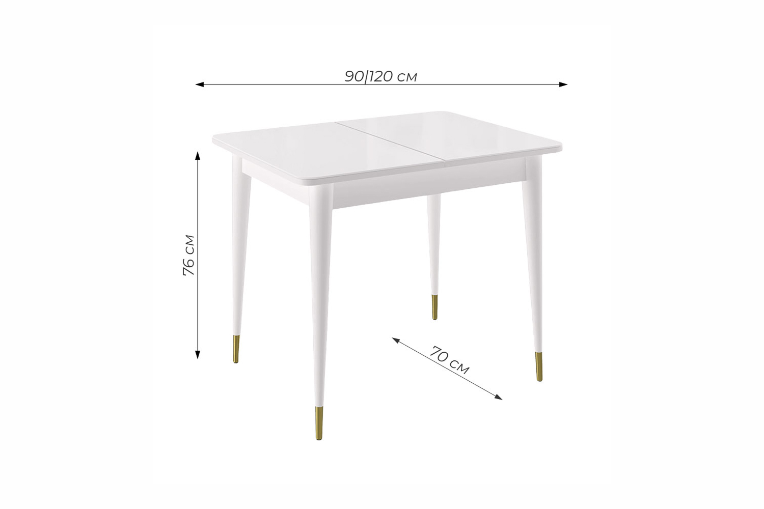 Стол обеденный Мане прямоугольный раздвижной К1100 опоры белого цвета с металлическими наконечниками, столешница - стекло белое сатин.