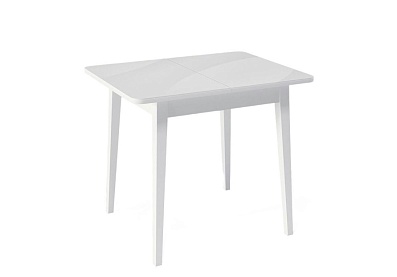 Стол обеденный Мане прямоугольный раздвижной К1100 опоры цвета венге с металлическими наконечниками, столешница - стекло белое сатин.