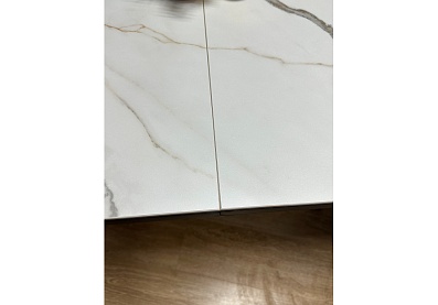 Столешница из стекла надежно защищает стол от влаги и горячего. Для данного стола применяется дорогое, просветленное стекло optiwhite которое передает чистый, яркий цвет без зеленого бутылочного оттенка. Стекло надежно крепится к подложке из ЛДСП на герметик, распределенный по всей поверхности столешницы.