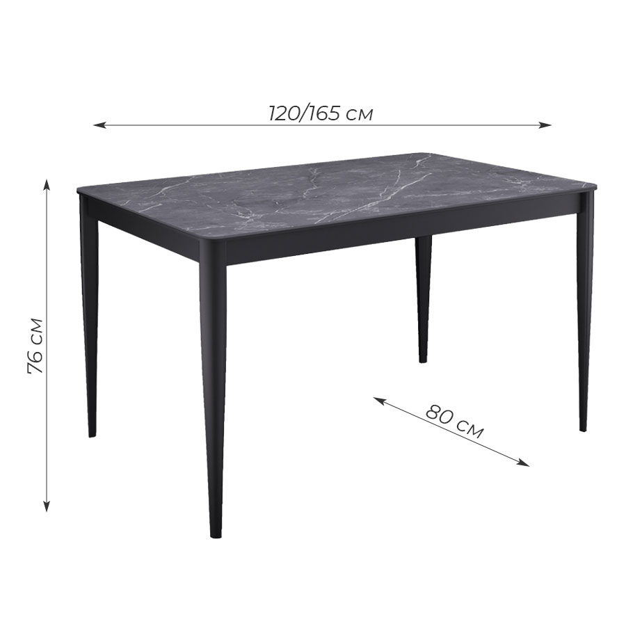 Купить Стол обеденный Стил раздвижной KS1200 черный/керамика мрамор черный в интернет-магазине мебели «Ангстрем»