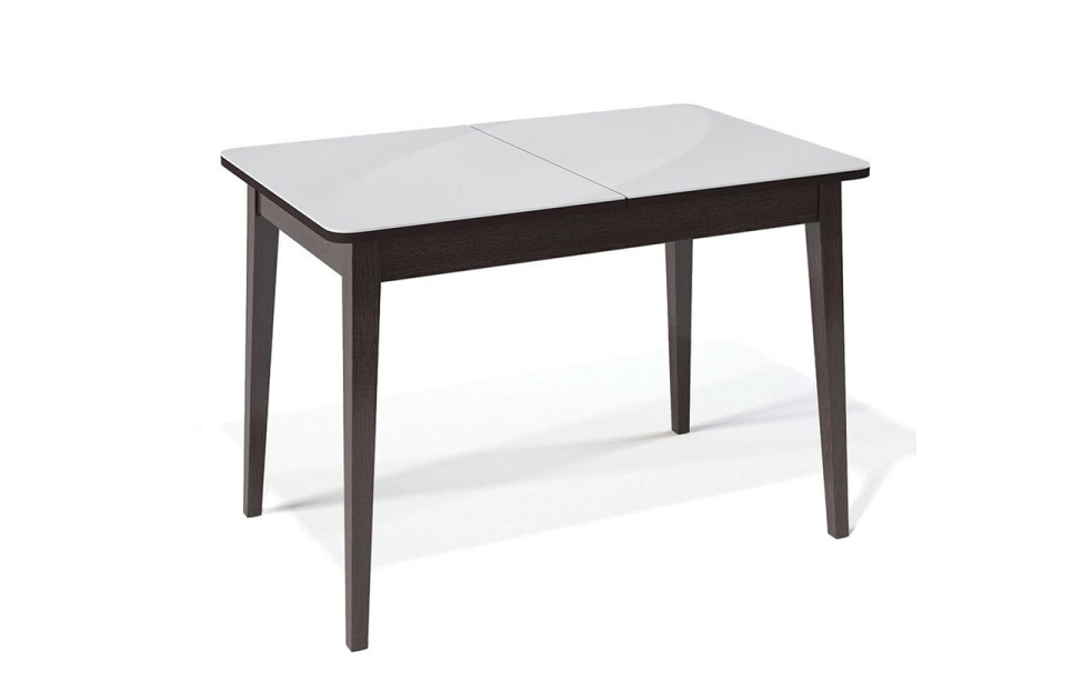 Стол обеденный Орпен квадратный раздвижной 1100М опоры венге, столешница - стекло белое глянец. Размер стола компактный и в то же время достаточно вместительный для ежедневного использования 4 человек, по каждой стороне достаточно места чтобы поставить 4 широких стула вокруг стола. Механизм раздвижения со стеклянной вставкой позволяет комфортно посадить еще 2 гостей. Компактный и очень функциональный стол, идеален для использования как на небольшой кухне, так и в качестве уютной обеденной зоны в гостиной. Столешница из стекла надежно защищает стол от влаги и горячего. Для данного стола применяется дорогое, просветленное стекло optiwhite которое передает чистый, яркий цвет без зеленого бутылочного оттенка.
