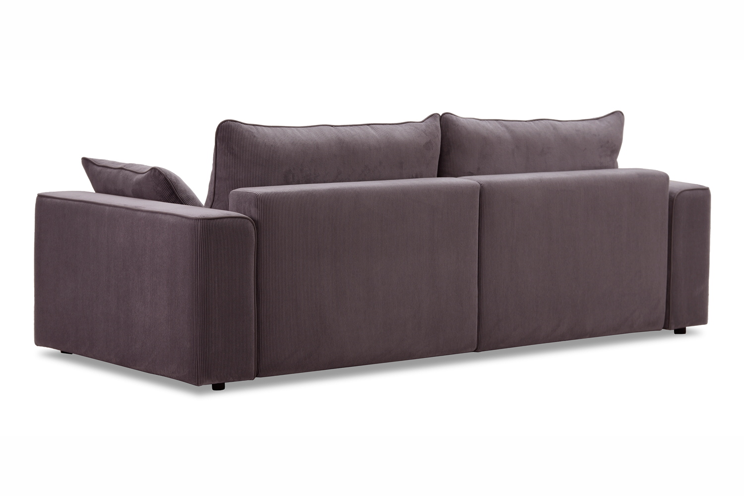 Диван выполнен в современном стиле, который будет гармонично смотреться в любом интерьере. Обивка из велюра c вертикальной текстурой актуального серого оттенка приятна на ощупь и легко чистится.