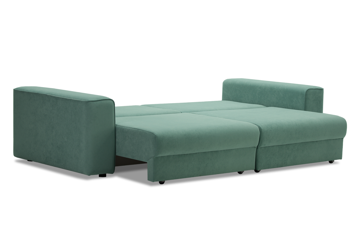 – описание: размер 91x251x112 см, цвет мятный (moss 14), материал обивки микровелюр, размер спального места 156 х 200 см.