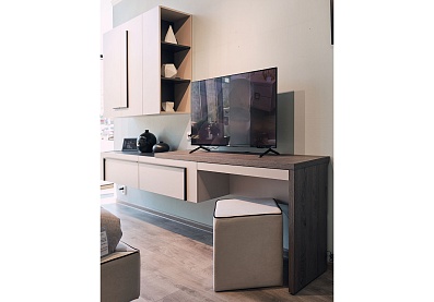 - Кромочный материал: ПВХ толщиной 0,4 и 2 мм на видимых торцах щитовых деталей, меламиновый — на невидимых;