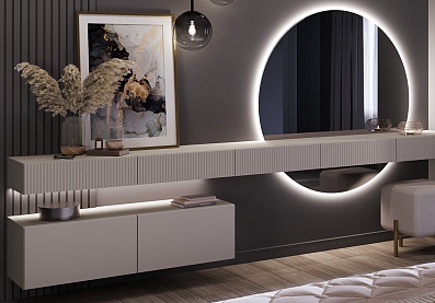 - Внимание! Открывание ящиков происходит путем захвата фасада снизу, поэтому нельзя навешивать вплотную снизу другие модули коллекции Дольче (открывание фасадов будет затруднительным);