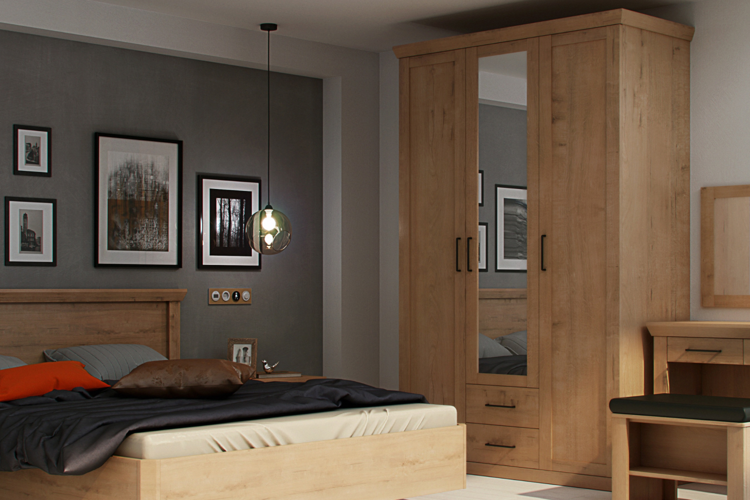 - Коллекция Магнум подойдет тем, кто ищет мебель, актуальную «на века». Такая спальня станет отличной покупкой для молодых людей и пар, которые только обустраивают свое жилье и пока окончательно не определились со стилем. Магнум может легко трансформироваться вместе со вкусами владельца: сегодня — лофт, завтра — минимализм, послезавтра — эко.