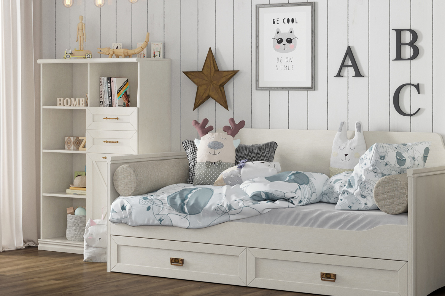 - элегантную односпальную кровать, стилизованную под диван (матрас в комплектацию не входит);