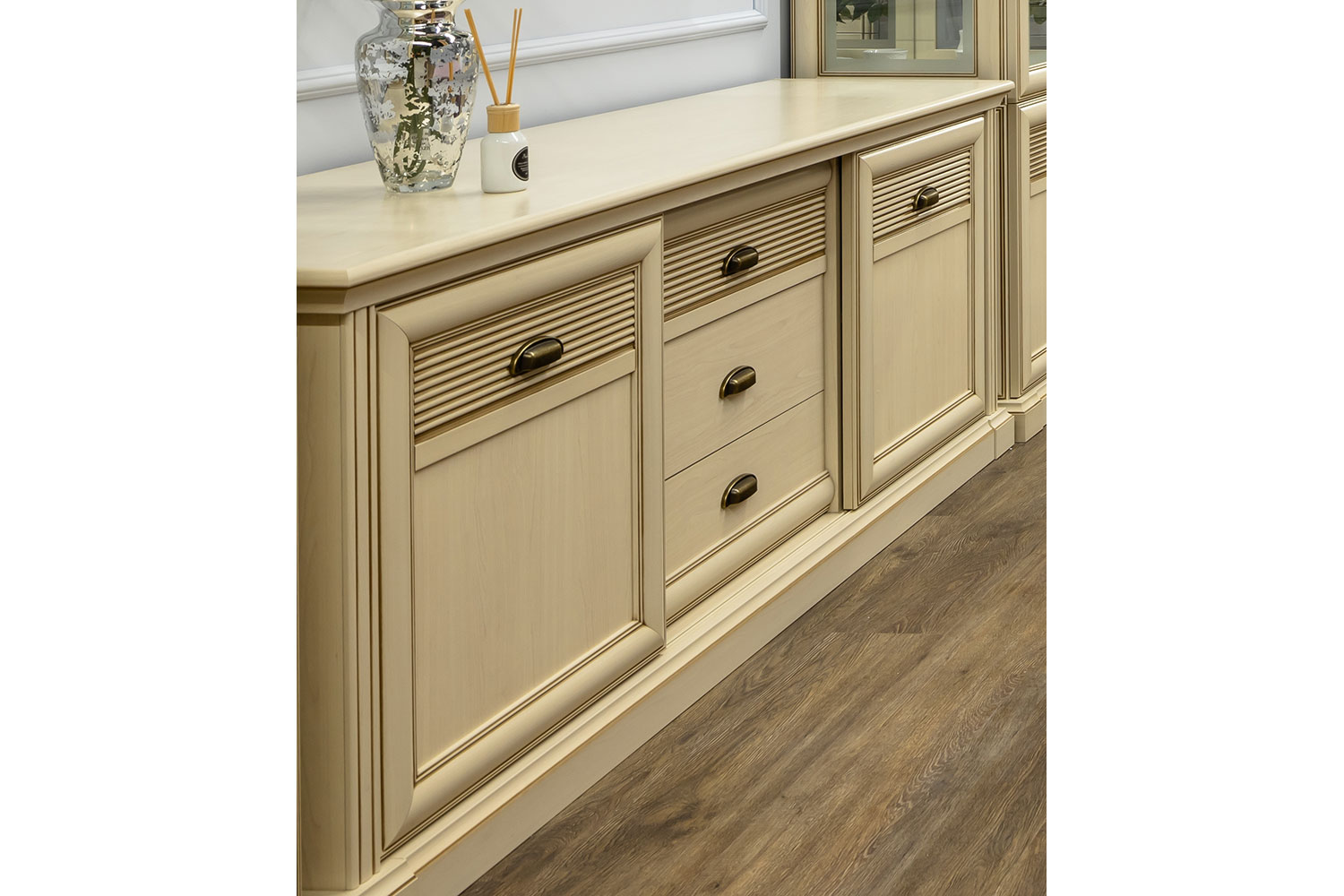 - Фасады ящиков и раздвижных дверей из ЛДСП с наклеенным профилем;