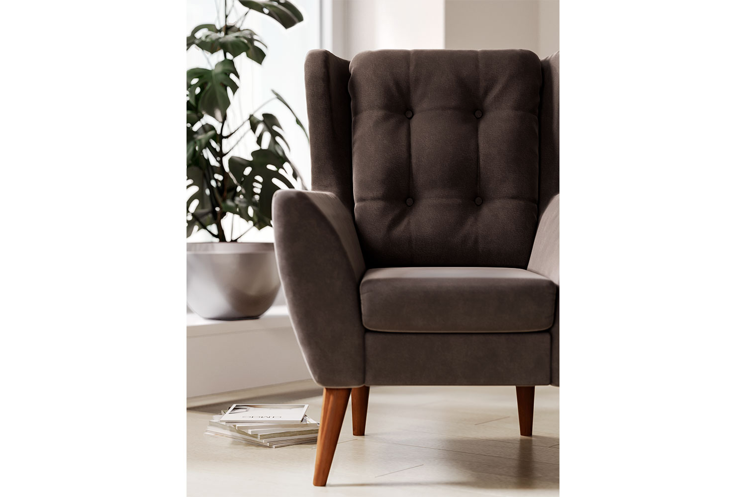 – описание: материал обивки велюр, стиль скандинавский, лофт, современный, размер 107x84x93 см, цвет коричневый (velutto 19).