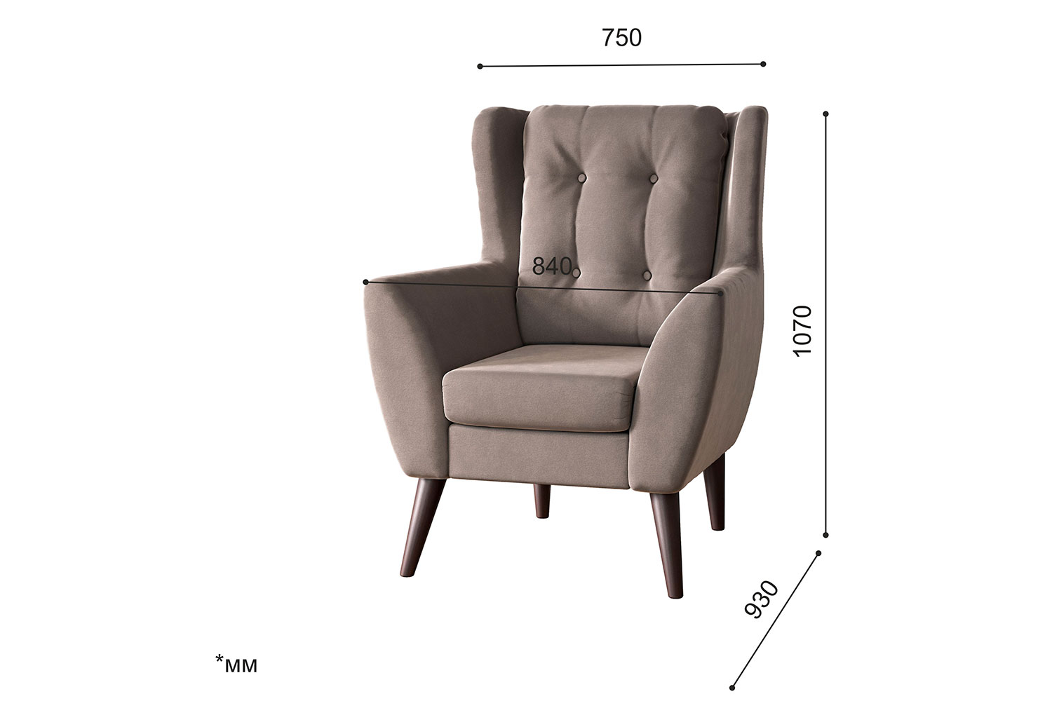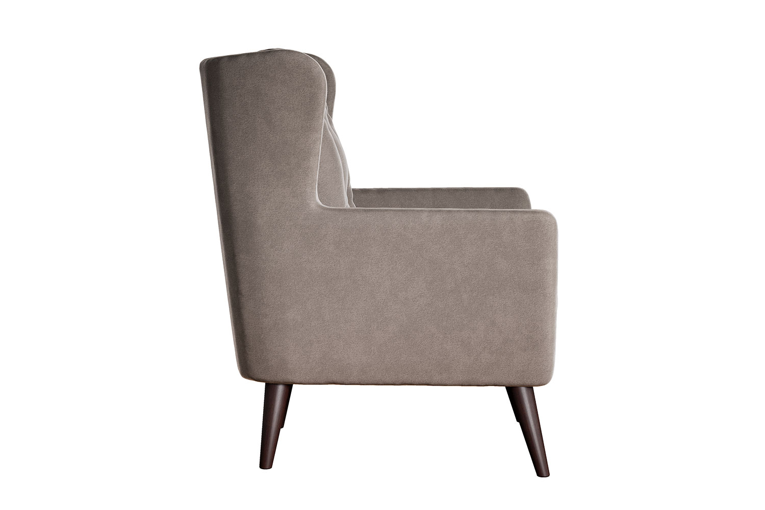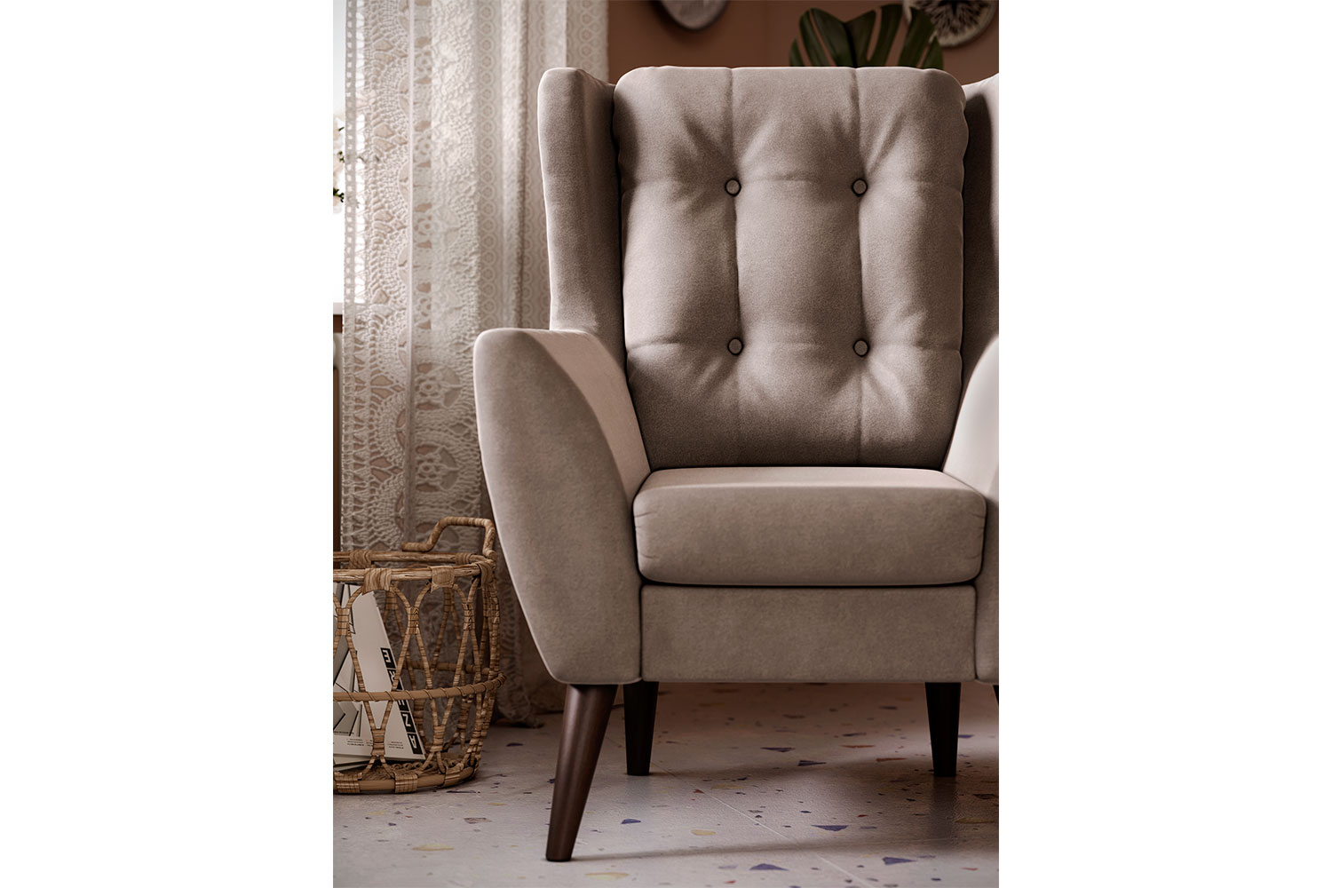 Модель с ушами, прообразом для которой послужило вольтеровское кресло, подойдет для оформления рабочего кабинета, гостиной или домашней библиотеки в стиле сканди, лофт или классика. Колоритные боковые выступы спинки символизируют уют и комфорт. Каретная стяжка и бархатистый мебельный велюр с матовой фактурой завершают традиционный английский дизайн. Изящные, утонченные ножки в цвете венге гарантируют устойчивость конструкции и словно приглашают усаживаться поудобнее.
