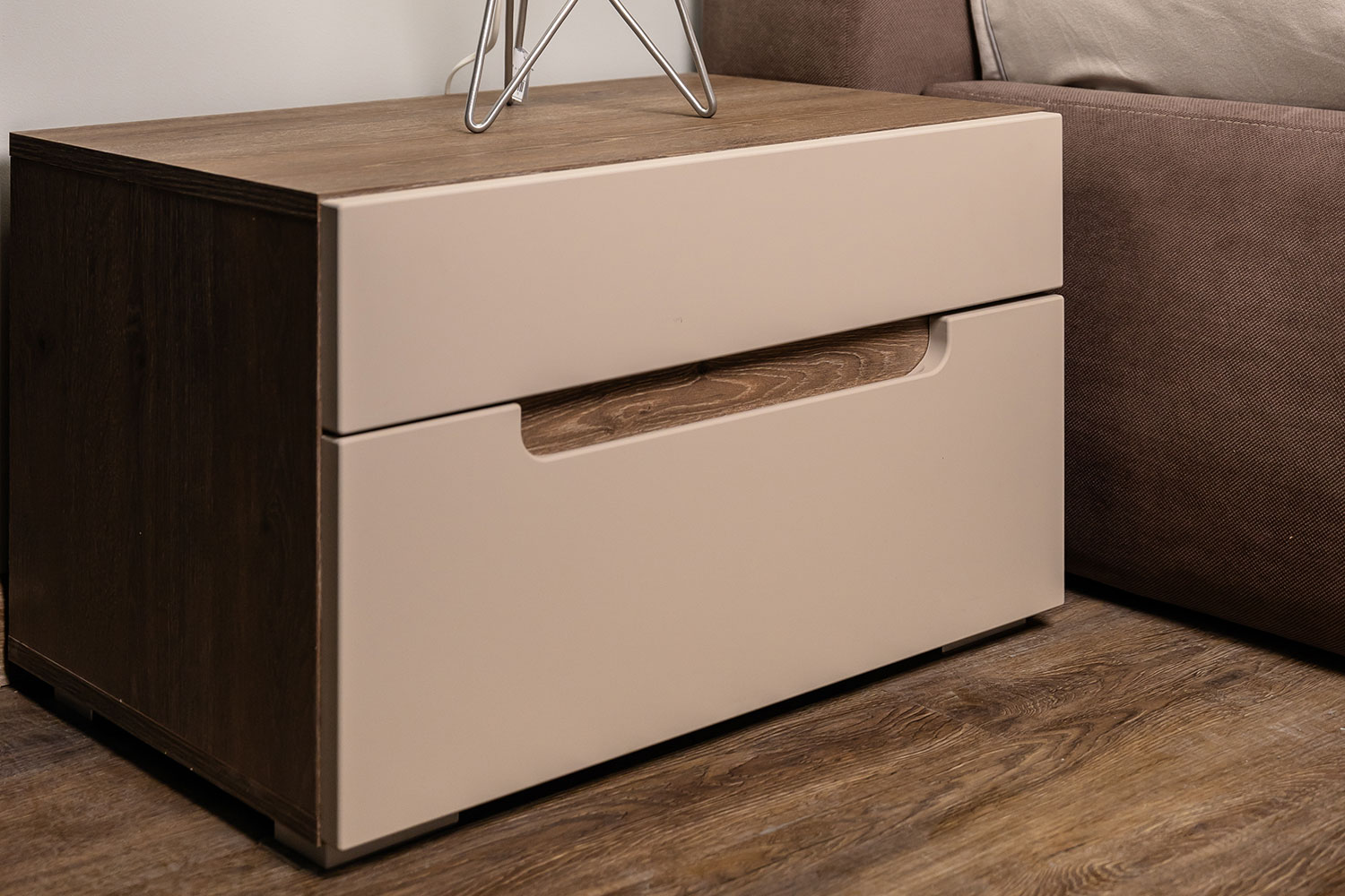 - Мебель выполнена в цветах «давос трюфель» и «бежевый»;
