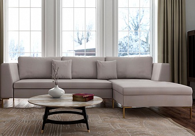 Диван Челси с оттоманкой, Д4 Светло-бежевый (Avelina 9534), Микровелюр